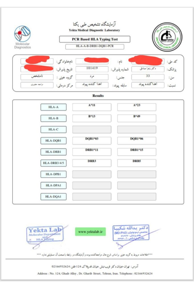 ازمایش hla موجوده