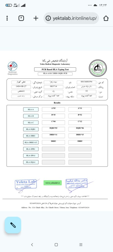 با سلام اهدا کننده خانم هستم 32ساله فروش فوری فوری تمام آزمایشات زیر نظر انجمن بیماران کلیوی کرج انجام شده HLA ،آزمایش خون ، سونوگرافی، نامه پزشک قانونی باگروه خونی o+