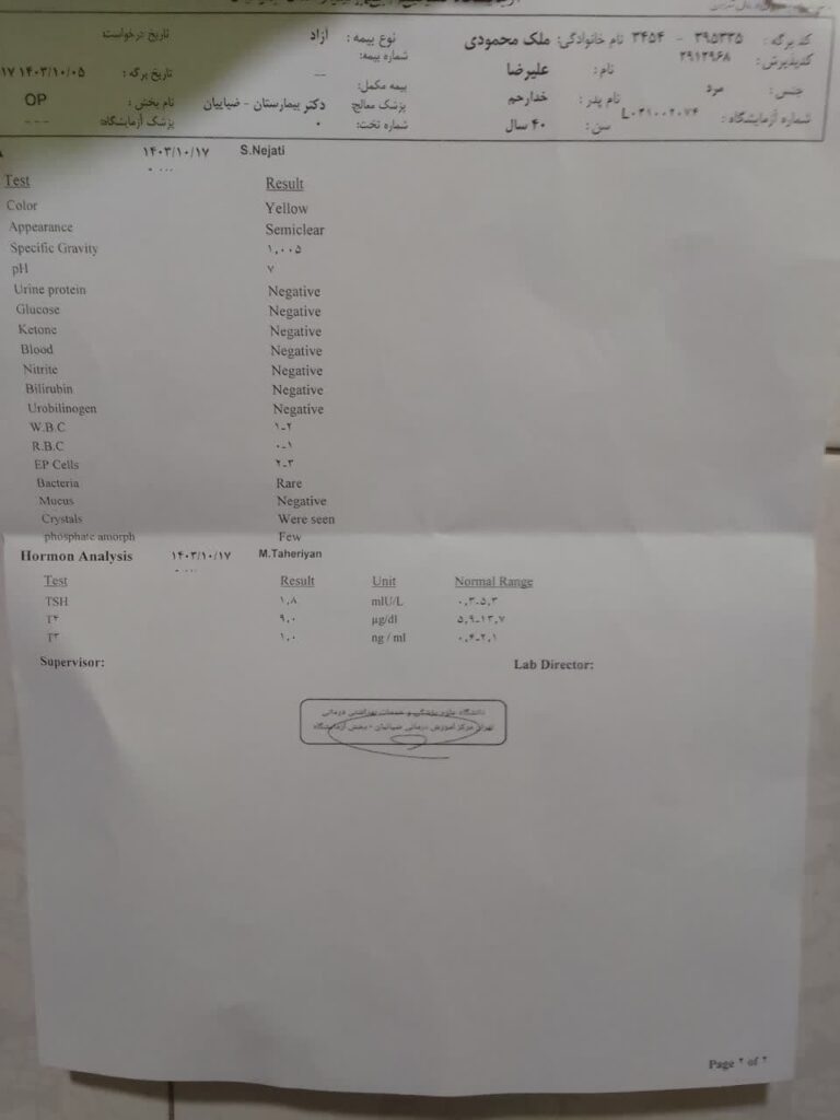 سلام من سابقه هیچ گونه بیماری یابستری شدن دربیمارستان ندارم بدن سالم وتن دورست