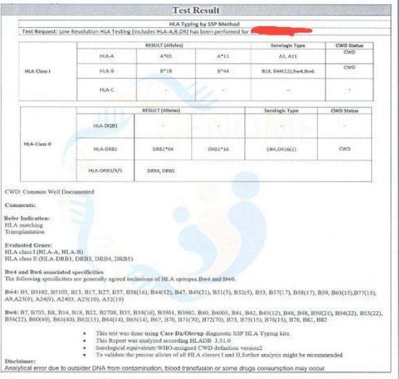 آزمایش HLA فول انجام شده و جواب آزمایش رو هم دارم